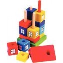 Maison cube, 4 abaques en bois. Jeu en bois massif aux couleurs très vives composé d’un socle avec 4 tiges sur lesquelles l’enfant doit empiler les 15 blocs géométriques (8 cubes fenêtres + 6 briques rectangulaires et le toit triangulaire) pour reconstituer la maison. Développe la concentration, l''adresse et l’esprit logique des enfants. Dimensions de la maison reconstituée : L. 11,5 x l. 11,5 x H. 23 cm. Dès 2 ans.