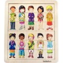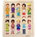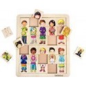 Encastrement 30 pièces les enfants du monde. En bois sérigraphié. Plateau composé de 10 puzzles de 3 pièces carrées interchangeables. Les enfants peuvent s''amuser à créer des personnages rigolos et insolites au gré de leur imagination ! Excellent exercice d''observation, de logique, d''imagination et d''association. Dimensions du plateau : L.29 x H.34 x ép.1 cm. Dès 4 ans.