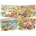 Lot de 4 puzzles à cadre en carton 35 pièces la ville. Assortiment de 4 grands puzzles à cadre composés d''un plateau et de 35 pièces en carton épais aux couleurs vives représentant 4 scènes de la ville: l’aéroport, le port, les pompiers dans la rue et le supermarché. Cette gamme de puzzles aux couleurs vives et aux illustrations détaillées permet de développer la curiosité et le sens de l’observation. Dimensions du plateau: L. 46 x l. 32 cm, ép. 0,4 cm. Dimensions du puzzle: L. 41 x l. 27 cm, ép. 0,2 cm. Dès 3 ans.