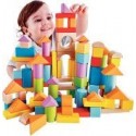 Baril de 101 blocs de construction en bois. Blocs en bois naturel et en bois peint de 8 couleurs et de 10 formes assorties : cubes, rectangles et triangles de tailles différentes, cylindres, demi-lunes et ponts. Permet de réaliser différents modèles de construction au gré de son imagination ou jeu de tri selon la couleur et la forme des blocs. Stimule la créativité et l''habilité des plus petits. Livré dans un baril en carton avec poignée et couvercle trieur de formes. Dimensions d’un cylindre : Ø.3 cm, H.4,5 cm. Dimensions d’un pont ou d’un grand triangle : L.6 x l.3 x H.3 cm. Dès 12 mois.