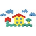 Jeu HEX-FLEX 200 pièces + 14 fiches. Ce jeu de construction en plastique rigide est constitué de 200 pièces + 14 fiches d’activités. Les pièces sont de forme hexagonale et de 4 couleurs assorties (bleu, rouge, vert et jaune). Ce sont des grandes pièces légères faciles à manipuler et à clipser par les plus jeunes. L''enfant assemble les pièces facilement pour former de grandes mosaïques au gré de son imagination ou reproduit les modèles proposés sur les fiches. Idéal pour améliorer la motricité, la préhension et développer la créativité des plus petits. Atelier pour 10 enfants. Livré avec 2 pochoirs (coloris aléatoires) pour personnaliser les pièces avec un marqueur ou pour jouer librement. Dimensions d''une pièce: Ø 4 cm. Dès 3 ans.