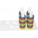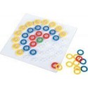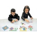 Boite de KLIC MOSAIC MAXI, 240 pièces. Contient 240 anneaux en plastique incassable (Ø 2,4 cm) de 4 couleurs assorties à clipper sur 12 plateaux de jeux (21 x 21 cm). Livré avec 27 fiches pour reproduire les différents modèles proposés et 8 bacs de tri en plastique à distribuer aux enfants. Intérêt pédagogique: motricité fine, reconnaissance des couleurs, le sens de l''observation et la créativité. Livré avec 8 abaques à monter soi-même : 5 supports rectangulaires (7 trous), 3 supports circulaires (5 trous), 30 tiges et 10 fiches modèles recto/verso. Atelier pour 8 enfants. Dès 3 ans.