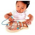 Labyrinthe magnétique Poisson. Magnifique labyrinthe en bois de toutes les couleurs permettant aux enfants de développer leur motricité fine, leur dextérité, leur coordination oeil/main tout en s''amusant. A l''aide du crayon magnétique, l''enfant guide les billes à travers ce labyrinthe portatif. Avec poignée Dim : 19.5 x 16 cm. A partir de 2 ans.
