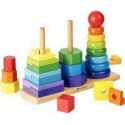 Abaque des formes géométriques empilables. Composé d''1 plateau et de 25 pièces de couleurs et de formes différentes.L''enfant doit encastrer certaines pièces et les empiler selon leur forme du plus grand au plus petit.Stimule l''imagination, développe la motricité fine, la coordination oeil/main et la logique.Permet d''aborder les notions de formes, de couleurs et de grandeur.Réalisé en bois.Dimensions du socle (L x l): 28 x 9 cm. Epaisseur: 2 cm. Hauteur de l''abaque avec les pièces : 20,8 cm.Dès 2 ans.