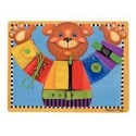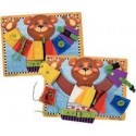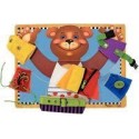 Planche atelier des fermetures. Oscar vous invite à la découverte des différents systèmes de fermeture. L''enfant habille et déshabille son ours préféré, ajuste sa ceinture à la taille, ferme son gilet. Composé d''un maxi plateau en bois avec 6 pièces de puzzle amovibles sur lesquelles se trouvent différents systèmes de fermeture : lacets, gros bouton, pression, clip, ceinture et fermeture éclair. Développe la motricité fine. Dimensions de la planche (L x l x ép.) : 39,5 x 29,5 x 1 cm. Dès 3 ans.
