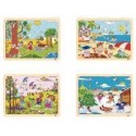 Lot de 4 puzzles à cadre en bois 15 pièces les saisons. Chaque puzzle est composé d''1 plateau et de 15 pièces en bois aux couleurs vives sur le thème des 4 saisons: printemps, été, automne, hiver. Véritables supports d''observation. Modèle du puzzle au dos du plateau. Disposent d''une encoche pour faciliter la préhension des pièces. Dim plateau: L. 29,5 x l. 22 cm, ép. 1 cm. Dim puzzle: L. 27 x l. 19,5 cm, ép. 0,4 cm. Dès 3 ans.