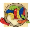 Encastrement casse-tête en bois, les poissons. Encastrement original en bois constitué d''un plateau et de 10 poissons de couleurs vives imprimés recto-verso. L''enfant doit logiquement trouver la place de chaque pièce afin de reconstituer l''encastrement. 1 seule combinaison possible. Développe l''esprit logique, la réflexion et l’observation. découpe précise au laser Dimensions du plateau : L.25,8 x l.25,8 x ép.1,2 cm. Dès 3 ans.
