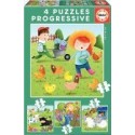 Boite de 4 puzzles progressifs, les animaux de la ferme