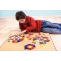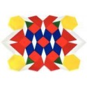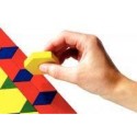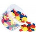 Carton de 250 Mosaïques en RE-WOOD 5mm. 250 pièces de formes géométriques en bois recyclé RE-Wood®. Contenu : 25 hexagones jaunes, 25 carrés oranges, 50 trapèzes rouges, 50 triangles verts,50 parallélogrammes bleus, 50 losanges beiges. Longueur arête 25 mm, épaisseur 5 mm But du jeu : Pour réaliser des compositions libres ou reproduire les modèles proposés sur le livret code 67181. Intérêt pédagogique : Développe le sens de l’observation. Pour distinction visuelle et repérage des couleurs et des formes géométriques. Livré dans un carton.