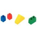 Assortiment de 40 briques géantes ultra souples. 3 formes et 4 couleurs assorties. Briques géantes en plastique ultra souple. Spécialement conçus pour les petites mains, faciles à assembler. Permet de jouer sans bruit et sans danger. Livré dans une boîte de rangement avec poignée, un guide pédagogique et des modèles simples à réaliser. Dimensions forme toit (L x l x H): 21,5 x 7 x 10.5 cm. Dimensions forme cube (L x l x H): 7 x 7 x 7,5 cm. Dimensions forme barre (L x l x H) : 14,5 x 7 x 7,5 cm. Dès 18 mois.