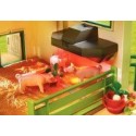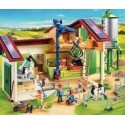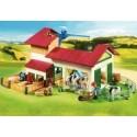 Grande ferme PLAYMOBIL. Plus spacieuse, elle accueille de nombreux animaux. La ferme comprend une étable équipée d’une brosse de massage mobile pour les vaches, un grenier, un silo à grains qui peut être rempli et vidé, une grue de chargement mobile et pivotante et une porcherie équipée d’une lampe chauffante pour les porcelets. Équipée de panneaux solaires sur le toit. Avec trois personnages, des animaux et de nombreux accessoires. Dimensions de la ferme complète : L.46 x l.50 x H.29 cm. Dimensions du silo : L.24 x l.14 x H.36 cm.