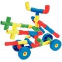 Jeu de construction TUBULO. Contient 64 éléments dont 4 grosses roues diamètre 7 cm.Tubes de 4 formes (en T, en croix, droit et courbe), 4 couleurs assorties.Diamètre des tubes 2 cm.Longueur du tube droit : 7 cm.jeu de construction original en plastique pour faire des créations dans l''espace avec des tubes qui s''emboitent facilement.A partir de 3 ans.