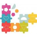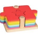 Puzzle d''apprentissage 2 en 1 en bois. 7 pièces de puzzle, 7 formes géométriques à encastrer et un socle pour ranger le tout. Le puzzle et la forme à encastrer sont de la même couleur.. Ce puzzle est idéal pour apprendre les formes et les couleurs tout en développant l''habileté manuelle. Dimensions du bloc : L.12,5 x l.10 x H.4,5 cm. Dès 3 ans.