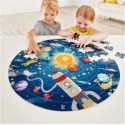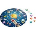 Puzzle rond le système solaire, 102 pièces. Puzzle en carton épais (93 pièces) pour apprendre le système solaire. Le soleil en plastique à LED (fonctionne avec une pile CR2025 non fournie) trouve sa place au centre et illumine les 8 planètes en bois massif à positionner au bon endroit dans la galaxie. Livré avec un poster recto/verso : d’un côté le modèle du puzzle et de l’autre un guide pédagogique pour apprendre le nom des planètes. Diamètre du puzzle : 57,5 cm. Dès 5 ans.