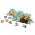 Puzzle animé la ville, 50 pièces. L''enfant doit d''abord reconstituer le puzzle (49 pièces), pose puis fais glisser l''appareil photo magique sur le puzzle et découvre plein de surprises animées les papillons qui s''envolent, les clowns qui jonglent... Puzzle original qui éveille la curiosité et l’imagination des enfants qui jouent au détective. Livré avec un poster recto/verso : d’un côté l''image du puzzle et de l’autre les parties animées à rechercher. Dimensions du puzzle : L.83 x l.40 x ép.0,2 cm. Dès 4 ans.