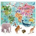 Puzzle géant le tour du monde, 108 pièces en carton. L''enfant assemble d''abord le puzzle puis place les 25 animaux en 3D dans leur habitat naturel. Idéal pour apprendre les continents, découvrir les attractions et les monuments du monde, reconnaitre la faune et la flore et comparer les populations et les cultures. Dimensions du puzzle : L.60 x l.44 x ép.0,2 cm. Dès 5 ans.