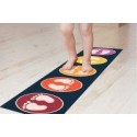 Set de 3 bandes de 5 pieds 150cm. En polyester, dos antidérapant. Idéal pour faire des exercices de motricité : sauter, placer son corps dans la position demandée. Les enfants reproduiront le sens des pieds en sautant d’une case à l’autre. Plusieurs exemples dans la notice. Dimensions d’une bande : 150x40cm.