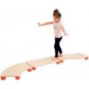Planche d''équilibre rectangulaire en bois. Planche d’équilibre en bois, munie de balles en caoutchouc sous le plateau qui permettent une surface toujours en mouvement ce qui développe chez l’enfant le sens de l’équilibre, la coordination et le renforcement musculaire. Installer les unes derrières les autres, cela donnera un chemin d’équilibre qui pourra venir compléter un parcours de motricité. Supporte un poids max de 80kg. Dimensions (LxlxH) :74x36x8cm A partir de 3 ans.