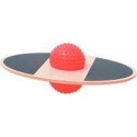 Planche d''équilibre ronde en bois. Planche d’équilibre en bois, avec pas antidérapants pour plus d’adhérence, munie d’une balle à picots en caoutchouc qui permet une surface toujours en mouvement ce qui développe chez l’enfant le sens de l’équilibre, la coordination et le renforcement musculaire. L’enfant serre ses pieds autour de la balle, et avance par petits rebonds. Dimensions (LxlxH) : 58x38x22cm Poids max : 80kg A partir de 3 ans.