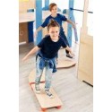 Planche d''équilibre zig zag en bois. Planche d’équilibre en bois, munie de balles en caoutchouc sous le plateau qui permettent une surface toujours en mouvement ce qui développe chez l’enfant le sens de l’équilibre, la coordination et le renforcement musculaire. Installer les unes derrières les autres, cela donnera un chemin d’équilibre qui pourra venir compléter un parcours de motricité. Supporte un poids max de 80kg. Dimensions (LxlxH) : 74x54x8cm A partir de 3 ans.