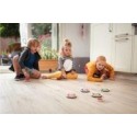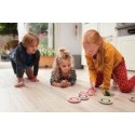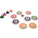 Curling d''intérieur. Contenu de la boîte : 8 rondelles (2x4 couleurs) avec boutons (diam.10 cm) et 4 pions servant de lancement et 1 cible. But du Jeu : sous le principe du curling, l’enfant lance la cible de base. Il se munit de sa couleur et doit se rapprocher de la cible. Les autres joueurs peuvent déloger l’adversaire en place afin de remporter la partie. Ce jeu doit impérativement se pratiquer en intérieur sur une surface lisse. A partir de 6 ans