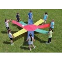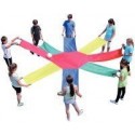Parachute Fleur d. 3.5m 16 poignées. Original, ce nouveau parachute en forme de fleur possède un diamètre de 3.5 mètres et 16 poignées. Il devient plus compliqué de faire rouler la ou les balles afin d''éviter qu''elles ne tombent. Matière 100% Nylon indéchirable. Pour 8 à 16 joueurs A partir de 5 ans