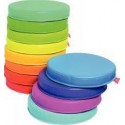 Set de 12 coussins ronds en mousse coloris assortis. Pratique et usuel, ce set aux couleurs chatoyantes trouvera facilement sa place au sein díun coin lecture ou repos. Il sera également apprécié dans des activités physiques (parcours).Mousse recouverte de PVCLavable avec une éponge et du savon.Dimensions : 32x5cm.