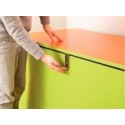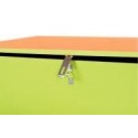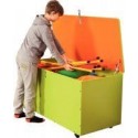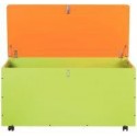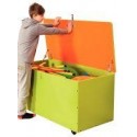 Coffre en bois à roulettes. En stratifié de 18 mm pour les côtés et de 12 mm pour le devant et l’arrière, équipé de 4 roulettes, et d’une fermeture à cadenas. Ouverture à 80°. Permet de ranger divers matériels : livres, instruments de musique, accessoires divers de sports… Livré démontée, à plat. Volume en litres : environ 518 l. Dimensions : L. 137 x l. 61 x h. 62 cm. (cadenas non fourni)