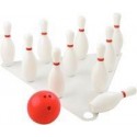 Set de bowling géant en plastique. Composé de : - 10 quilles en plastique de 38 cm, diam. max 120 mm, poids : 150g. - 1 boule en plastique diam. 220 mm, poids : 1360g. - 1 gabarit de placement des quilles Pour pratiquer de façon réaliste ce jeu d’adresse particulièrement attractif, les enfants disposent d’un tapis repère sur lequel ils disposent les 10 grandes quilles stables qu’ils pourront renverser à l’aide de la boule avec empreintes de doigts. Jeu qui pourra animer vos kermesses ou fêtes des écoles.