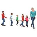 Corde de promenade. Peut être tenue par 12 enfants (6 de chaque côté). Apprend et sécurise une sortie en extérieure. Matière nylon. Longueur totale : 2.80m.