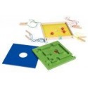 Planche de coordination. Contenu : Une base en bois relié à 4 cordes, trois plateaux de jeux différents, 3 boules d. 3cm. But du jeu : Mettre les balles dans les trous. Plusieurs variantes avec les 3 plateaux. Intérêt pédagogique : Apprendre à jouer en équipe, développe la coordination. Dimensions : 35 x 35x 4 cm De 4 à 8 joueurs. A partir de 6 ans