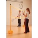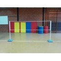 Kit découverte badminton, volley mini tennis. Un ensemble filet poteaux 3 en 1 pour líapprentissage du mini tennis, badminton et soft volley-ball, composé de 2 grandes bases à lester avec eau ou sable et de 2 poteaux réglables par clips, ainsi que díun filet Nylon de 3 m de large que vous pourrez positionner à différentes hauteurs jusquíà 1,60m, en fonction de líactivité sportive choisie et de la taille des élèves. Pour une utilisation optimale du produit, il est conseillé d''accrocher les ficelles du filet à des crochez muraux afin de tendre au maximum.