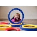 Set de 9 anneaux d''activités. En plastique très résistant. Les enfants feront des tas d’activités avec ces anneaux de tailles et de couleurs différents : ils pourront les faire rouler, sauter dedans, les trier, les comparer, faire des parcours… Ils pourront aussi découvrir le braille, grâce aux points en relief représentés sur les anneaux. (Petit, moyen, grand écrit en braille sur les anneaux) Diamètre 25cm : rouge Diamètre 35cm : jaune Diamètre 45cm : bleu A partir de 12 mois.