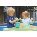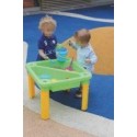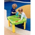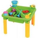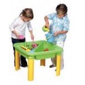 Table à sable et à eau, en plastique. Contenu : 2 pelles, 1 râteau, 1 seau, 1 arrosoir, 1 bateau, 6 moules, 1 tamis, 1 bâche et 2 bondes de vidange (1 dans chaque compartiment)Table en plastique trés résistant, séparée en 2 parties : 1 bac pour mettre le sable et 1 pour l''eau.Dimensions de la table (L x l x H) : 59 x 59 x 42.5 cm.Contenance en litre : 7L par bac.