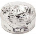 Pot 6g de copeaux à dorer argent. Donne un aspect précieux sur tous supports: papier, carton, bois, verre, métal, plâtre... Finition opaque et brillante. La dorure aux copeaux se fait à l''aide du vernis colle au pinceau plat (code 12047) ou au pochoir sur l''objet à décorer propre et sec. Appliquer le vernis et laisser sécher quelques minutes. Poser ensuite les copeaux à dorer et brosser délicatement avec le pinceau très souple pour lisser la surface. Protéger le travail contre l''oxydation du métal avec du vernis. Copeaux en laiton. Pot plastique avec couvercle.