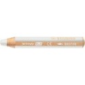 Crayon de couleur Woody blanc. Crayon 3 en 1 à la fois crayon de couleur, craie grasse et aquarelle. Son corps large et léger est parfaitement adapté aux petites mains. Sa mine grasse extra tendre et très pigmentée permet de dessiner et écrire sur une multitude de surfaces, telles que le bois, le verre, le plastique, le carton ou encore une ardoise, un tableau noir ou blanc. Sa mine aquarellable se dilue avec un pinceau et de l’eau. Longueur 11cm, diamètre mine 10cm, diamètre crayon 15 mm. Corps rond.