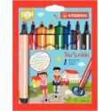 Pochette de 8 feutres Trio Scribbi. Pointe large, tracé de 1.5 à 2 mm, montée sur amortisseur, pour un feutre indestructible. Corps large triangulaire, pour une meilleure prise en main. Encre super lavable sur les mains et sur les vêtements. Capuchon ventilé. Etui carton. Nouvelle couleur incluse : rose chair.