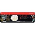 Boite de 6 feutres pen68 métal. La boite est composée de plusieurs couleurs : or, argent, cuivre, bleu métallisé et vert métallisé. Pointe ogive robuste. Tracé 1,4mm. Design ultra chic inscription métallisée sur corps noir. S''utilise sur la plupart des surfaces lisses, idéal sur papiers foncés et colorés.