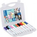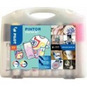 Mallette de 11 marqueurs Pintor. Marqueurs peinture à base d''eau, riches en pigments. Mallette composée de 7 marqueurs pointe fine 2,9 mm, tracé 1mm. (noir, violet, orange, vert, blanc, bleu ciel et rose.) et de 4 marqueurs pointe moyenne 4,5mm, tracé 1,4 mm. ( noir, bleu, rouge et jaune).