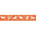 Paquet de 6 pochoirs en plastique thème les animaux de la ferme. 6 pochoirs différents par pochette. Dimensions : 14,5 x 14,5 cm. Pour obtenir un bon résultat avec un pochoir, fixer le pochoir sur la surface à décorer avec de la bande adhésive. Utiliser une brosse à pocher d''un diamètre suffisant par rapport au motif à réaliser. Utiliser une peinture suffisamment épaisse. Bien évacuer l''excédent de peinture de la brosse à pocher, puis effectuer des mouvements circulaires dans le pochoir. Ne pas tamponner, ce qui aurait pour effet de faire baver la peinture sous les bords du pochoir. Les enfants peuvent utiliser un pinceau mousse.