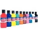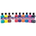 Lot de 10 flacons de 250 ml peinture vinylique plastifiante. Couleurs vives assorties