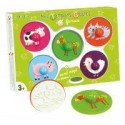 Coffret 5 tampons géants + encreur. Thème : Les animaux de la ferme.Contient 5 tampons en bois de taille maxi (diamètre 8.5 cm) pour faire de beaux dessins à colorier, 1 encreur maxi format (diamètre 9cm) intégré au plateau.Coffret idéal pour les petits.Encre non toxique et 100% lavable à l''eau.Grosse poignée pour faciliter la prise en main des tampons.Dimensions du plateau : 32.5 x 23 x 4 cm.Dès 3 ans.