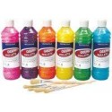 Carton de 6 flacons de 500ml de gel pailleté coloris arc en ciel. Des couleurs originales et festives : violet, rose, jaune, bleu, orange et vert. Prêt à l''emploi. Gel translucide riche en paillettes. Multisupports en application directe ou applicable sur un support déjà peint ou en mélange avec de la gouache. A base d''eau, elle devient transparente en séchant, ne laissant apparaître que les paillettes de couleur. Ce produit permet également les techniques de collage et d''inclusion. Utilisable telle une gouache aux doigts. Idéal pour les plus petits 5 brosses universelles offertes. Présence d''amidon de blé 12,9% et de gluten 0,19%.