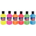 Lot de 6 flacons de 250ml de peinture vinylique plastifiante couleurs fluo assorties