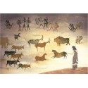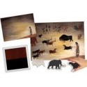 Set de 20 feuilles support thème peintures rupestres. Composé de 20 feuilles pré-dessinées avec 4 modèles de fonds différents. Format A4. En associant les tampons avec les feuilles supports, les enfants pourront réaliser de beaux dessins à afficher dans la salle de classe ou à ramener chez eux. Dès 3 ans.
