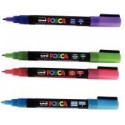 Pochette de 8 marqueurs Posca pointe fine ogive pailletés. Peinture pailletée opaque et couvrante à base d''eau tout support, permanente sur surfaces poreuses et effaçable sur le verre. Couleurs miscibles, aquarellables et superposables. Pointe 0.9 - 1.3mm.