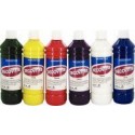 Lot de 6 flacons 500 ml de peinture DECOVITRE MAJUSCULE. Peinture translucide pour décorer l''intérieur des vitres et des fenêtres. Ne génère pas de coulures. Nettoyage facile à l''éponge humide. A base d''eau. 6 couleurs assorties: blanc, jaune, rouge, violet, bleu et vert. Conforme à la norme EN 71-3.