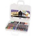 Mallette de 20 marqueurs Posca festive assortis. Peinture opaque et couvrante, sans alcool ni solvant et sans odeur. Permanent sur surfaces poreuses, effaçable sur le verre. Couleurs miscibles, aquarellables et superposables. 3 tailles de pointes: PC1MC (0.7mm): noir, vert foncé, blanc, or, rouge, argent PC3ML (pailleté) (0.9-1.3mm): vert foncé, orange, rouge, rose, jaune, bleu foncé, violet PC5M (métallisé) (1.8-2.5mm): bleu métal, or, bronze, rouge métal, vert métal, rose métal, violet métal