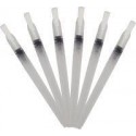 Lot de 6 brosses plates à réservoir, pointes larges. Pointe plate 8 mm de large, 4 mm d''épaisseur. Idéal pour les aplats et pour l’aquarelle. Pinceau brosse à réservoir rechargeable de 8 ml à dévisser. Remplir d''eau, d''encre ou de peinture fluide et appuyer sur le réservoir pour contrôler le débit. Avec capuchon et poils en fibre synthétique. Nettoyage facile.