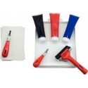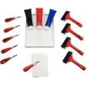 Kit d’initiation à la linogravure. Kit contenant tout le matériel nécessaire pour une initiation à la linogravure pour les écoles primaires cycle 3 (dès 8 ans). Les plaques de linogravure SOFTCUT sont ultra tendres et faciles à graver par les enfants. Comprenant : - 10 plaques à graver en gomme SOFT CUT, format : 10 x 15 cm, - 10 poignées pour gouge, - 10 pointes gouge en métal "spécial" enfants, - 3 flacons d''encres 100 ml : bleu, noir et rouge, - 2 bacs à encre, - 5 rouleaux encreurs (75 mm). Avec notice et mode d''emploi détaillé. Facile à utiliser : je dessine, je grave, j''encre et je presse. Réutilisable en ré-encrant la plaque.